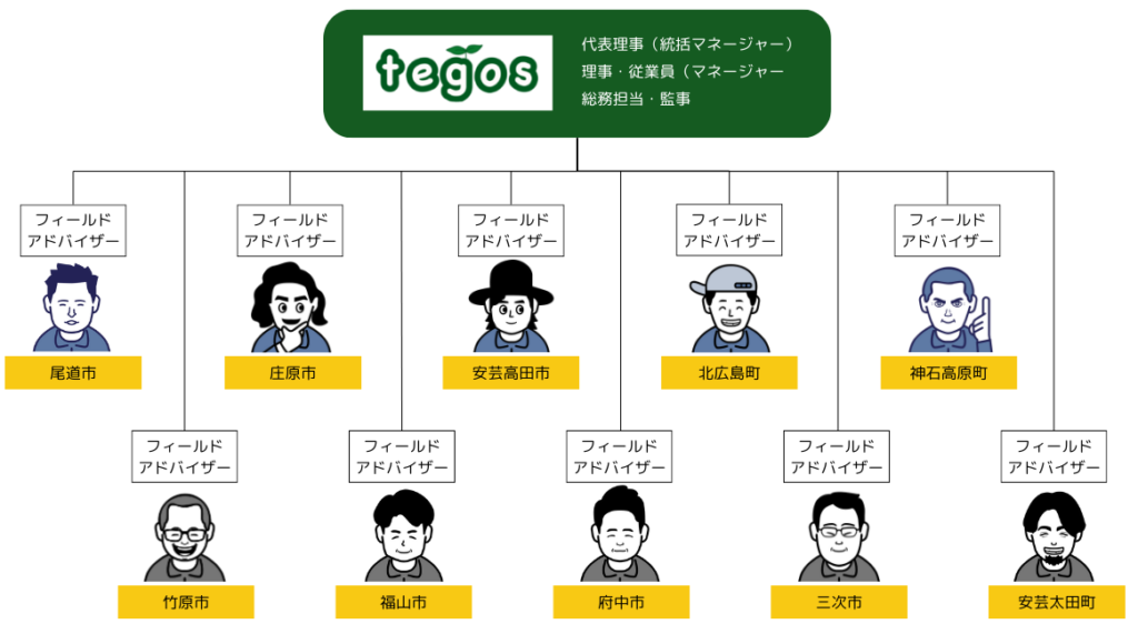 | 駐在拠点 | 広島県内10市町 竹原市、尾道市、福山市、府中市、三次市、庄原市、安芸高田市、安芸太田町、北広島町、神石高原町 |