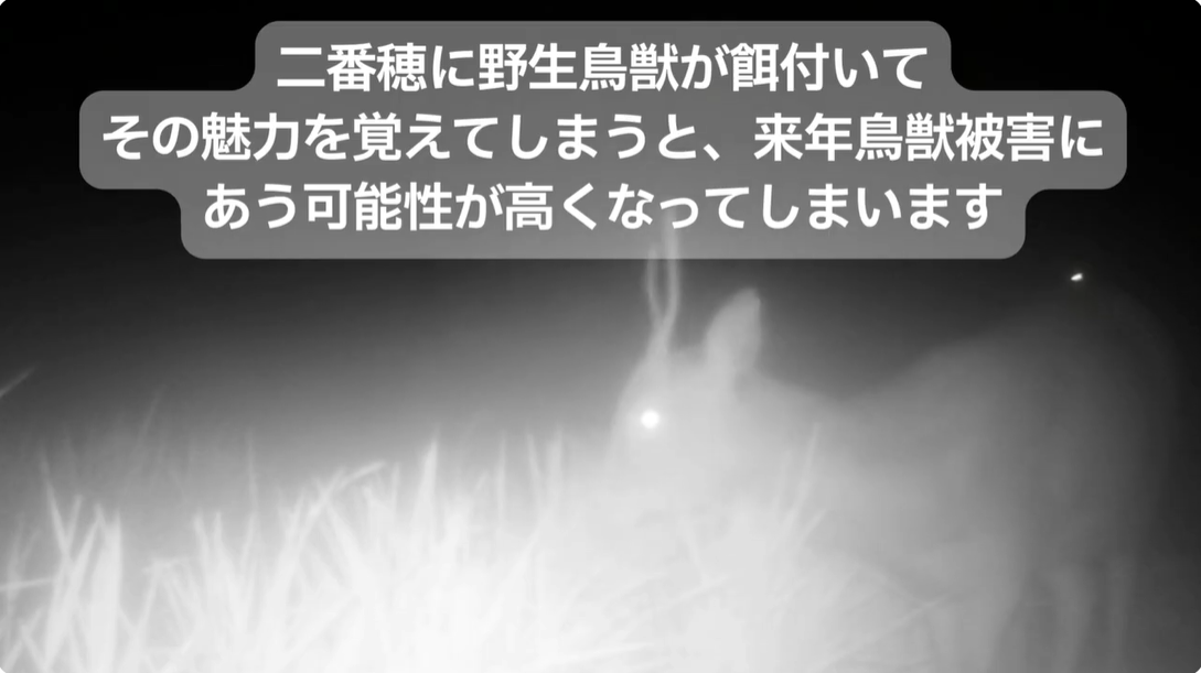 稲刈り後に伸びてくる二番穂、野生鳥獣にとってはこの二番穂も美味しく栄養価が高いので魅力的なものです!動画内では一心不乱に二番穂を食べるシカの動画を紹介しています。