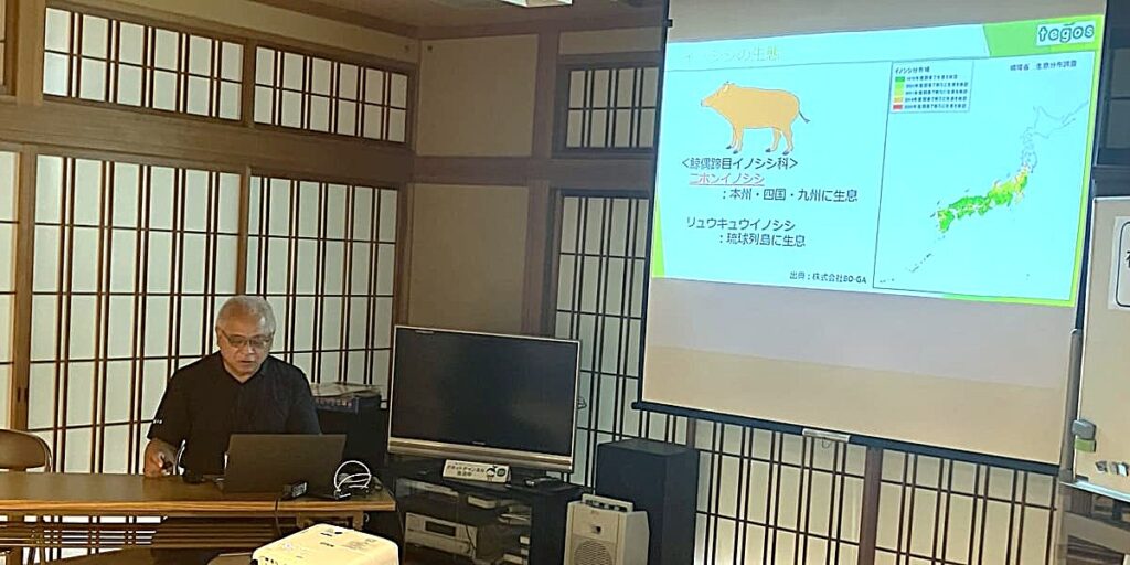 また、イノシシやシカの行動をセンサーカメラの映像を用いて説明しました。