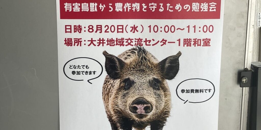 大井地域交流センターから出前講座の依頼を受け、8月20日に「有害鳥獣から農作物を守るための勉強会」を開催しました!