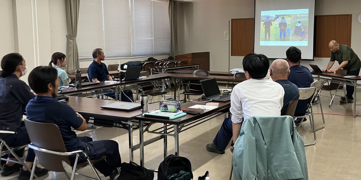 午前の部では、まず、座学で調査技術のうちセンサーカメラの活用方法を学びました。